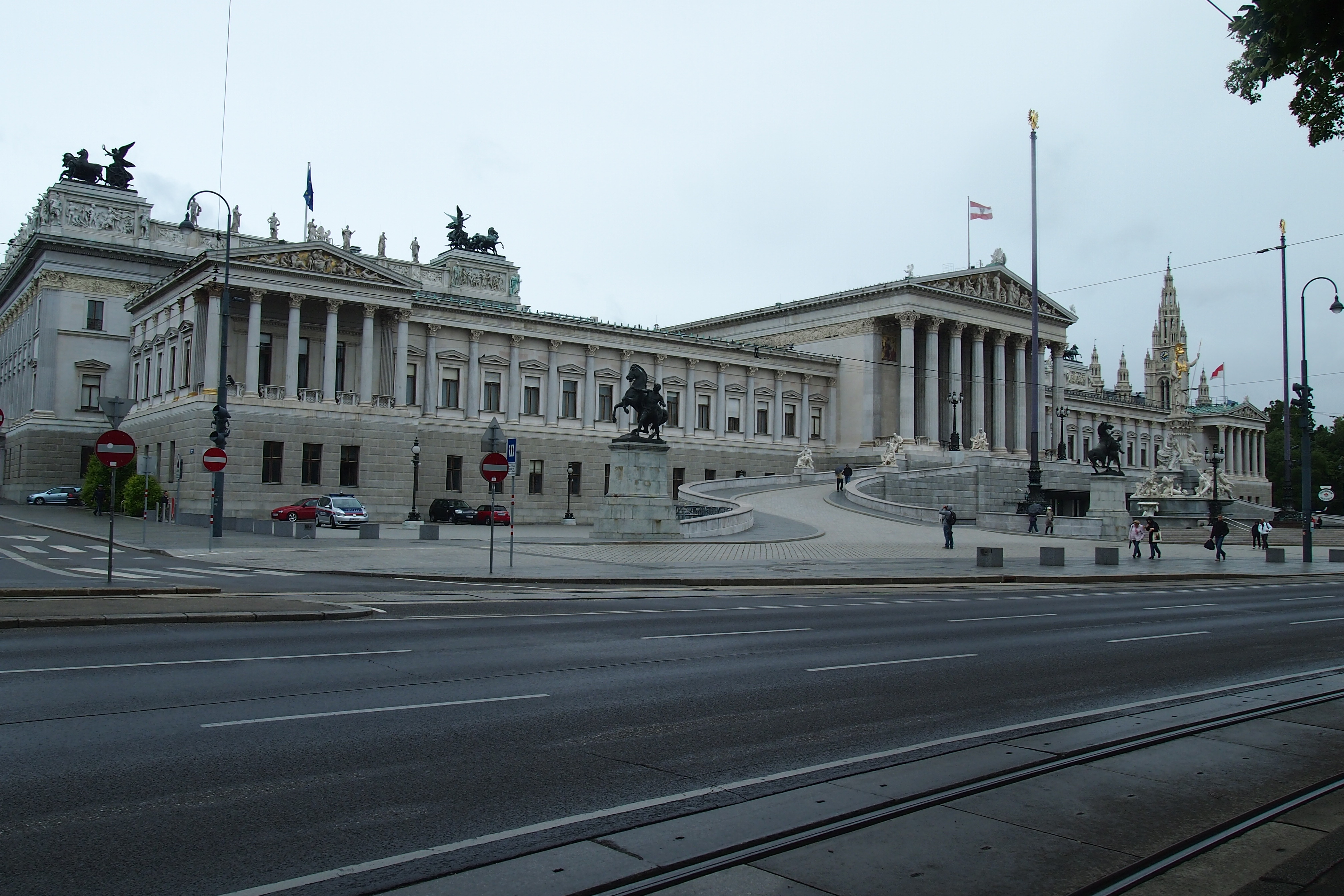 So, through the park, stopping to take heaps of photos of beautiful roses, across Dr Karl-Renner-Ring to the magnificent Parliament House built in the classic Grecian style. What an amazing structure and I thought rather unusual to find in Austria. However there is a reason for the choice of design. When the Imperial Commission was appointed to consider the design it was influenced by the industrialist/politician Nikolaus Dumba who preferred the Greek classical style. After all, it was a style conducive to and appropriate for a parliament, given its connection to the seat of democracy. The successful architect was Theophil Hansen and thus this amazing Greek temple stands in Vienna serving the parliament.