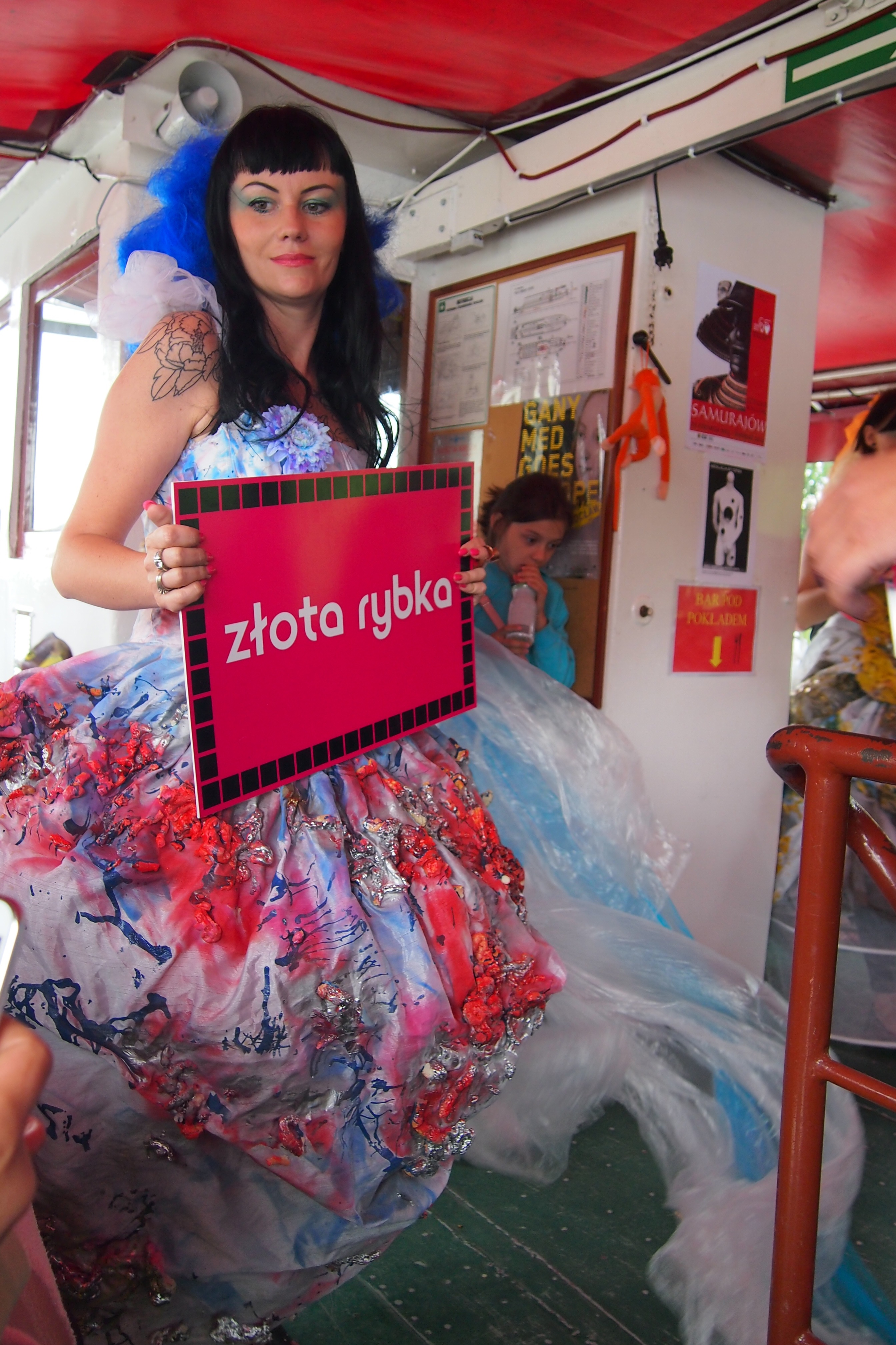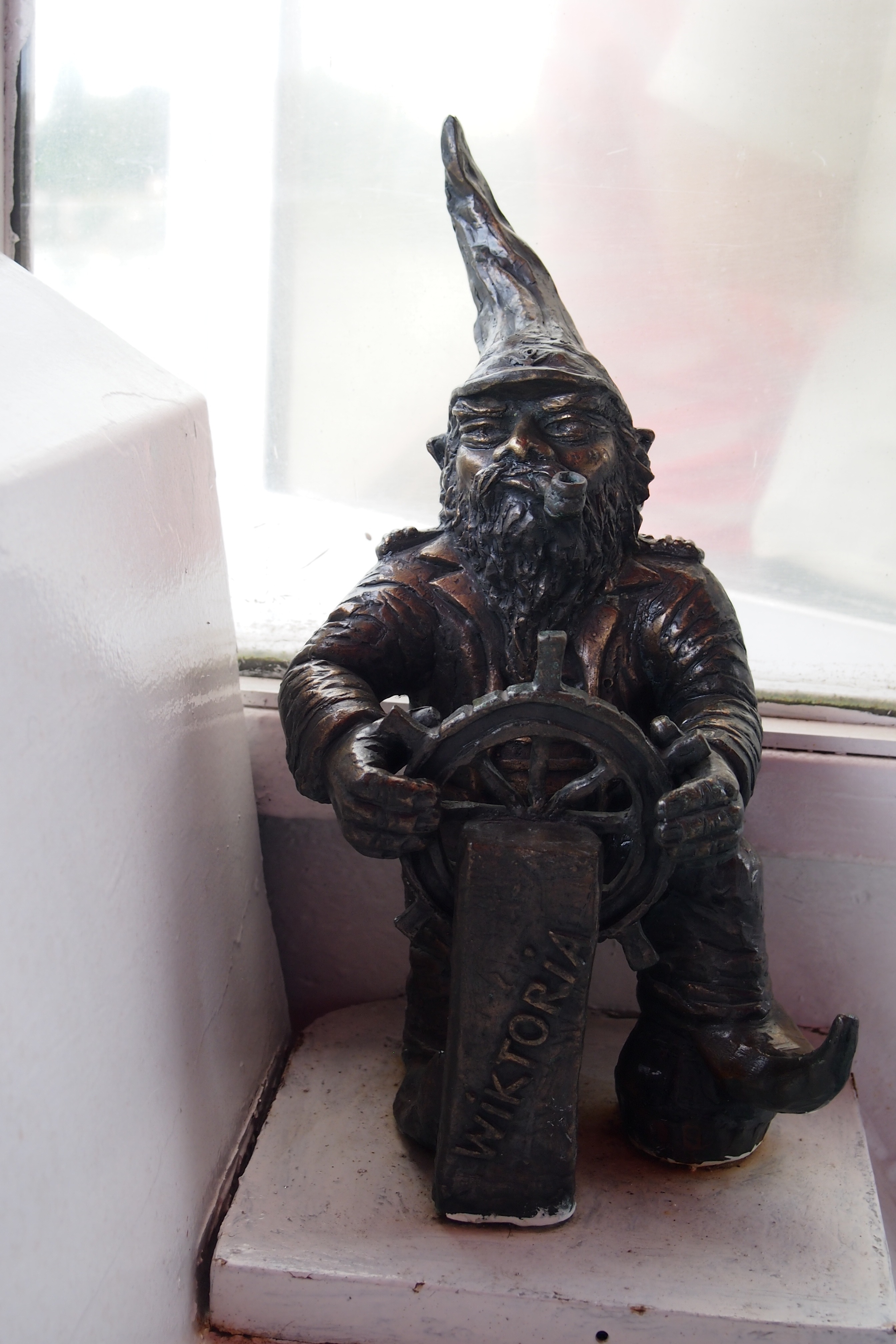 Speaking of river cruises another big day lay ahead with lots of surprises, we walked up to the river Oder (Odra in Polish) near the zoo, and on the pretext of only asking about the river cruises Ewa actually got us onto a cruise, which happened to be the first of the ‘Underwater Wroclaw’ festival The Underwater Festival constitutes over 20 cruises on the river, each has a concert, an exhibition or a performance, of some sort. Pretty cool, we were treated to a satire of what it’s like to be a model surrounded by people and paparazzi as well as a nice cruise on the river Oder. We the passengers were asked to make this an interactive show by being the paparazzi with our many cameras. That boat (The Viktoria) was where we found a surprise gnome – the ship’s captain gnome.