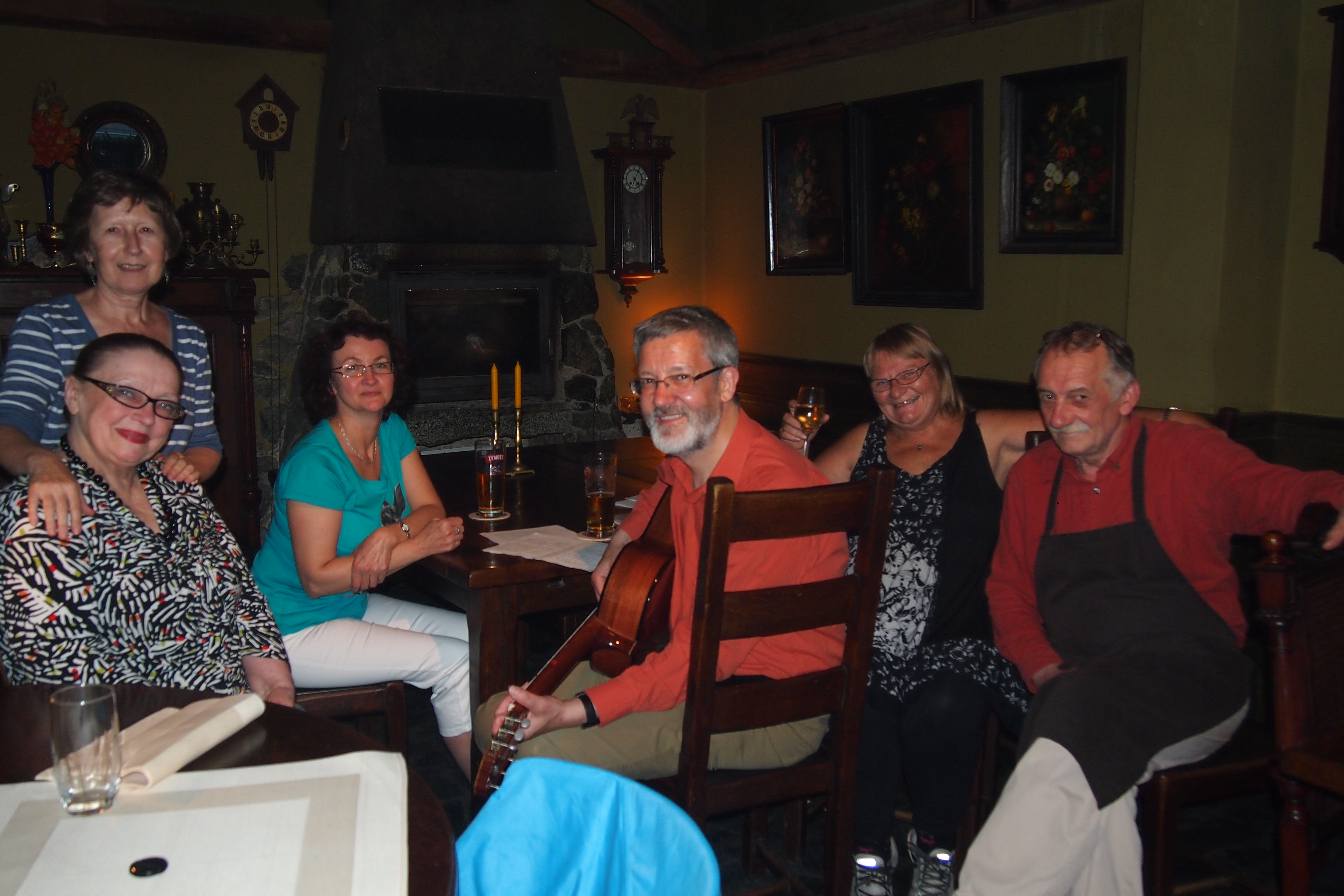 Well! The 5th of July, it was time to return to Wroclaw and what started out as 2 very tired women just making their way back from Krakow on the bus and doing nothing else turned into one heck of an entertaining evening! We thought we had better go back to the Four seasons restaurant (the first one Ewa took me to when I arrived in this city 10 days earlier) to have dinner, return the book the hosts lent us and to say goodbye. We had a beautiful dinner, then a couple of people with a guitar came in (usually this couple was there with a friend on a Wednesday not a Friday, so we were lucky). They entertained us for ages singing Polish, Russian and English language songs (even Moonshadow, fancy, and they didn’t even know my nickname!) The guy is a High School teacher of Biology, sings in a choir and has a great voice. His guitar has a beautiful mellow tone and his partner should sing more, she has a lovely voice, but she’s a little fearful. Then we were introduced to a professor of something or rather but as I, sadly, don’t speak Polish I focused on chatting to the owner of the restaurant who speaks Russian, is an artist and both he and his wife are absolute sweethearts. He even gave me copies of two of his dog sketches, two pets previously owned by him and his wife, a Borzoi and a St Bernard (I so wish I had asked him to sign them). Sad to say goodbye to such lovely people, but that’s travel!