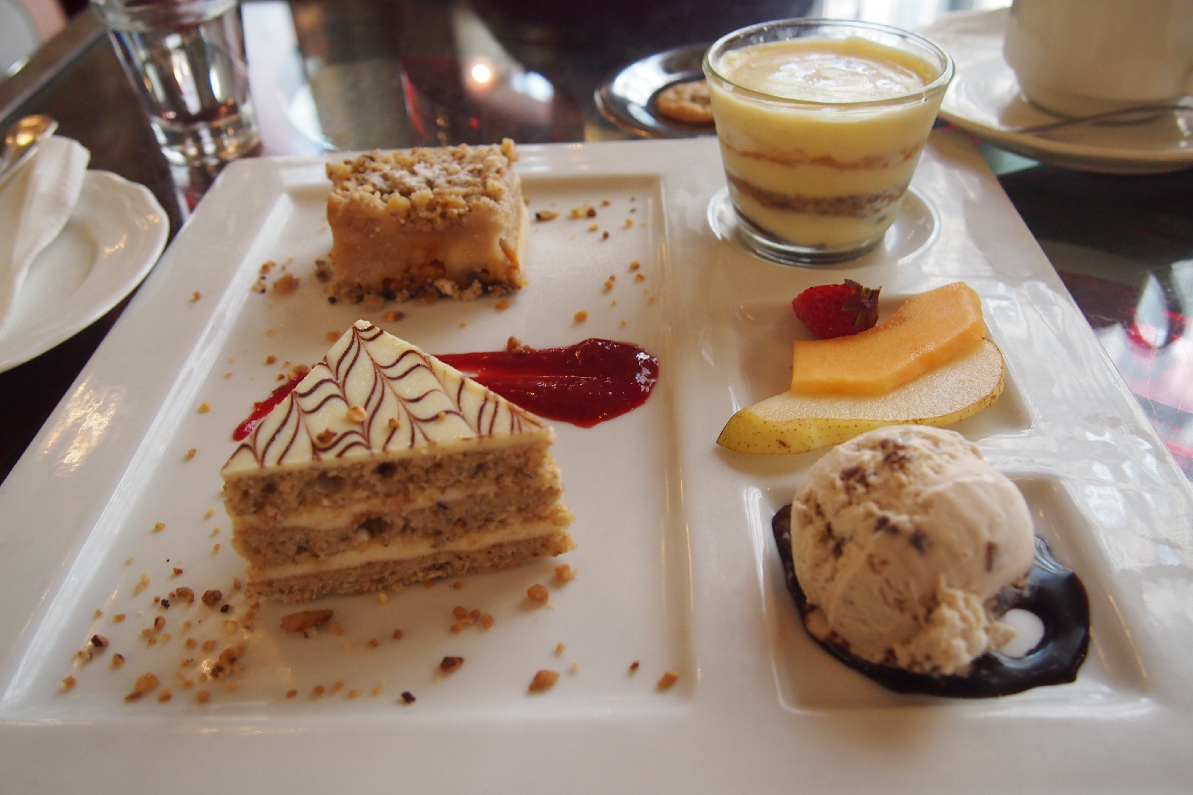 The best of today? Morning tea in the ultimate cafe poets venue! The New York cafe! What a history, a place where poets and literary people met and so ornate it’s amazing! I think it gives Paris a run for its money. The prices are 4 star but oh, so worth it!  Come on fellow poets, we need a place like this back home! Surrounded by Versailles worthy glitz I felt very special as I munched my way through a degustation plate of assorted desserts. Sadly though even they didn’t have the Dobos Torte, never did find it, so couldn’t compare my mother’s recipe.