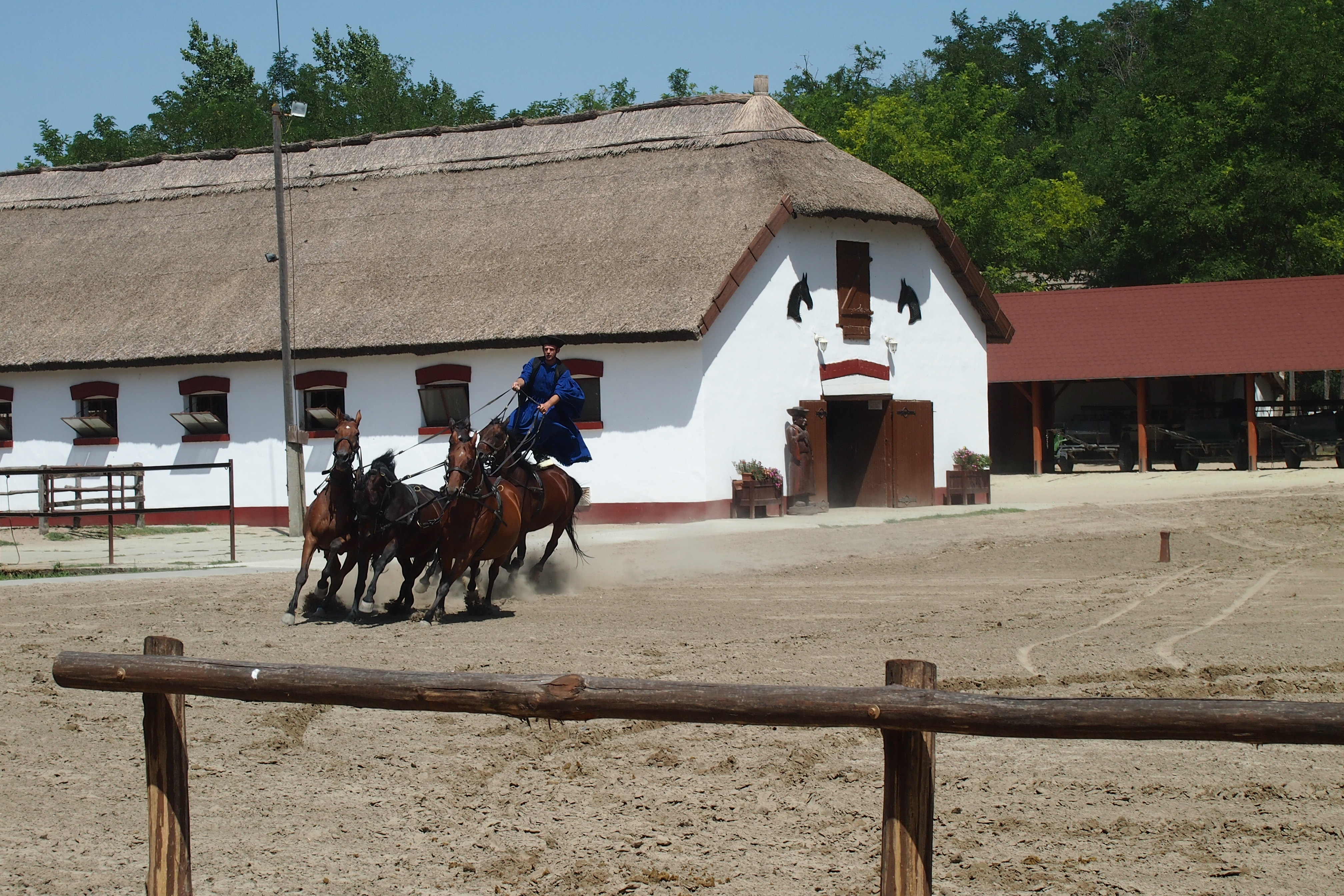 Great day today, tour to the Hungarian Puszta. Apparently in the old days it was a desert caused by the usual misuse of the land and the robbers used to hide out there. They became the horse herdsmen we saw depicted today and developed some incredible horsemanship. The Puszta was slowly regenerated by firstly introducing the Canadian Acacia tree, apparently it has roots that could reach the water in the sub-soil and bit by bit with good management the place turned green again. They have kept a few tourist farms that give you a sense of what it was like in the desert days.