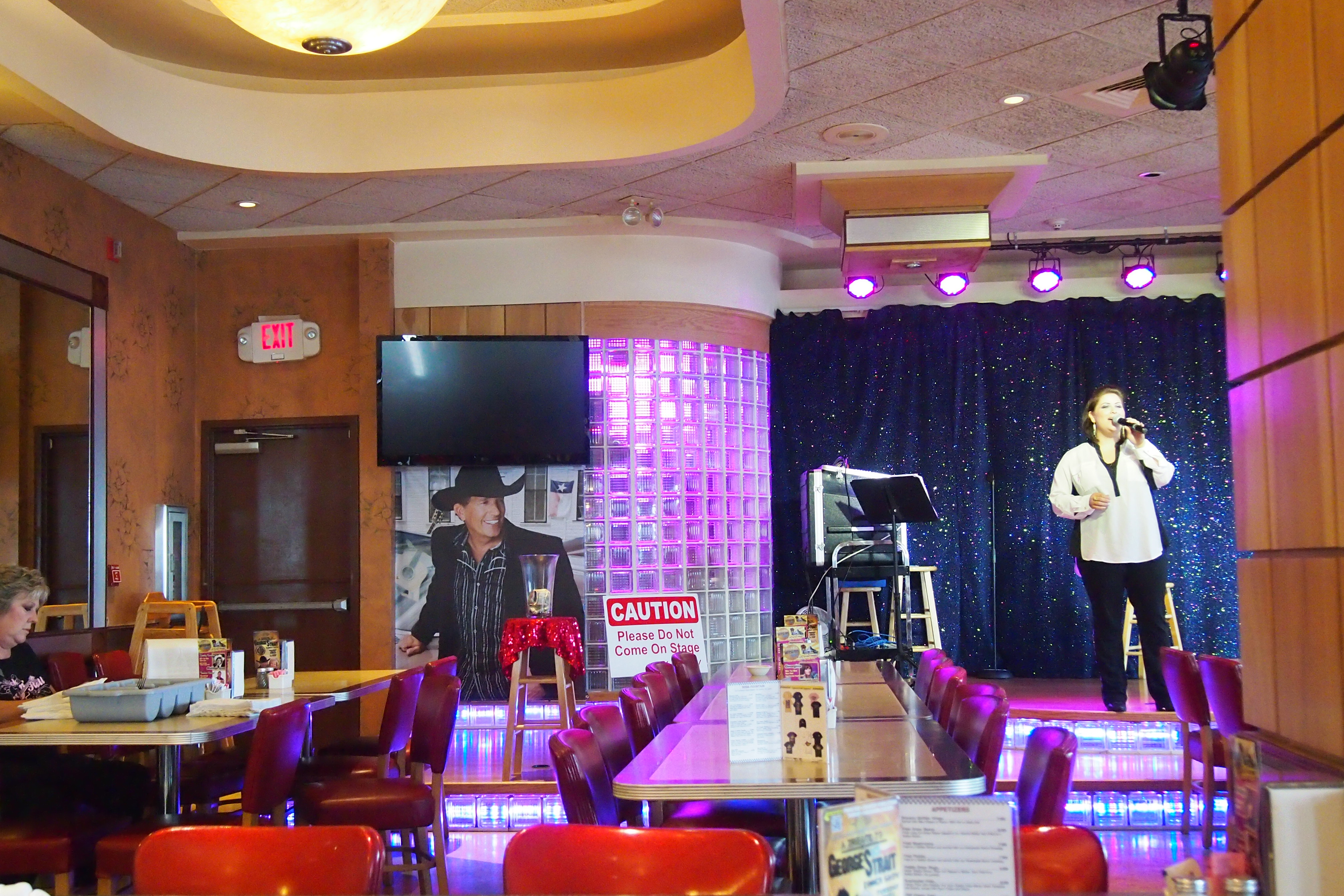 Music, music, music and more music, my type of trip. Loving this town. Breakfast at the Uptown Diner, we walked in, paid our money and found that they have live performers at breakfast time, how awesome is that?! Today it was Georgina a very talented country singer. Breakfast in these parts is ‘interesting’ to say the least, I drew the line at grits, and a few other things after tasting them. While there we discovered that there was a George Strait tribute tonight, met the performers so we bought the tickets (so lucky, last tickets but one of the best tables!). Breakfast was followed by a visit to the wax museum, really just filling in time but we ended up having a heap of fun taking photos with a few Hollywoodians. That took us up to the show that was the whole reason for coming to Branson – Legends in Concert with DeanZ (current 2013 Ultimate Elvis winner).