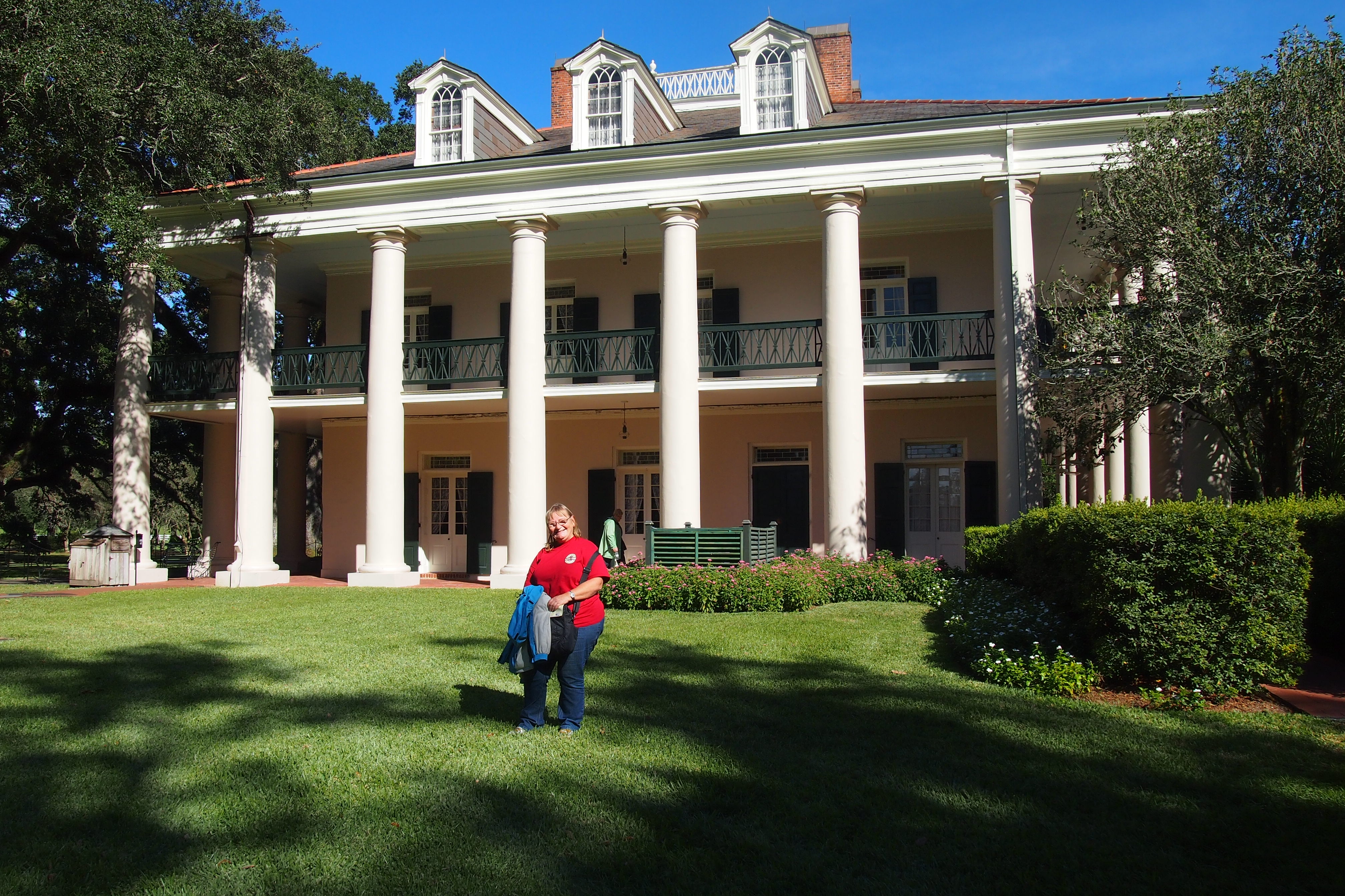 So the ‘supposed’ French here aren’t very good at making coffee either, had the bitterest shortest espresso in the biggest paper cup, followed by an equally bitter cappuccino – sigh!! Anyway the day improved, we drove out of town to visit one of the Creole sugar plantations (not a plantation any more). Really lovely place called Oak Alley named after the 28 oak trees (300 years old) that form the alley leading up to the house. It’s not Gone with the Wind though, apparently the Creoles didn’t go in for that style of ostentation although they did live the high life. The house is lovely but not huge, with as much original furniture as they have been able to track down. The place fell apart as the original family lost it after the Civil War and it only got restored in the 1920’s. Had lunch in their restaurant, a yummy chef’s special of eggplant layered with seafood and sampled all 3 juleps, very nice indeed. Back to Bourbon Street at night, dropping into a few clubs, found some nice jazz tonight played by Steamboat Willie. Oh boy that street really gets full of people, noisy everyone drinking (you are allowed to drink in public as long as the drink is in plastic, so everything is served in plastic). There is dancing, music, performers, buskers, people on balconies throwing mardi gras beads at the people on the ground, the odd parade goes by, all the souvenir shops are open and every bar has live music, mostly no cover charge but you have to buy a drink every set and then there are the interminable tips, that’s all the bands get for their playing. It really is colourful, but by 10pm half the people are seriously drunk and the bars are overflowing with people so it was time to leave – great day though, and tomorrow is another day.