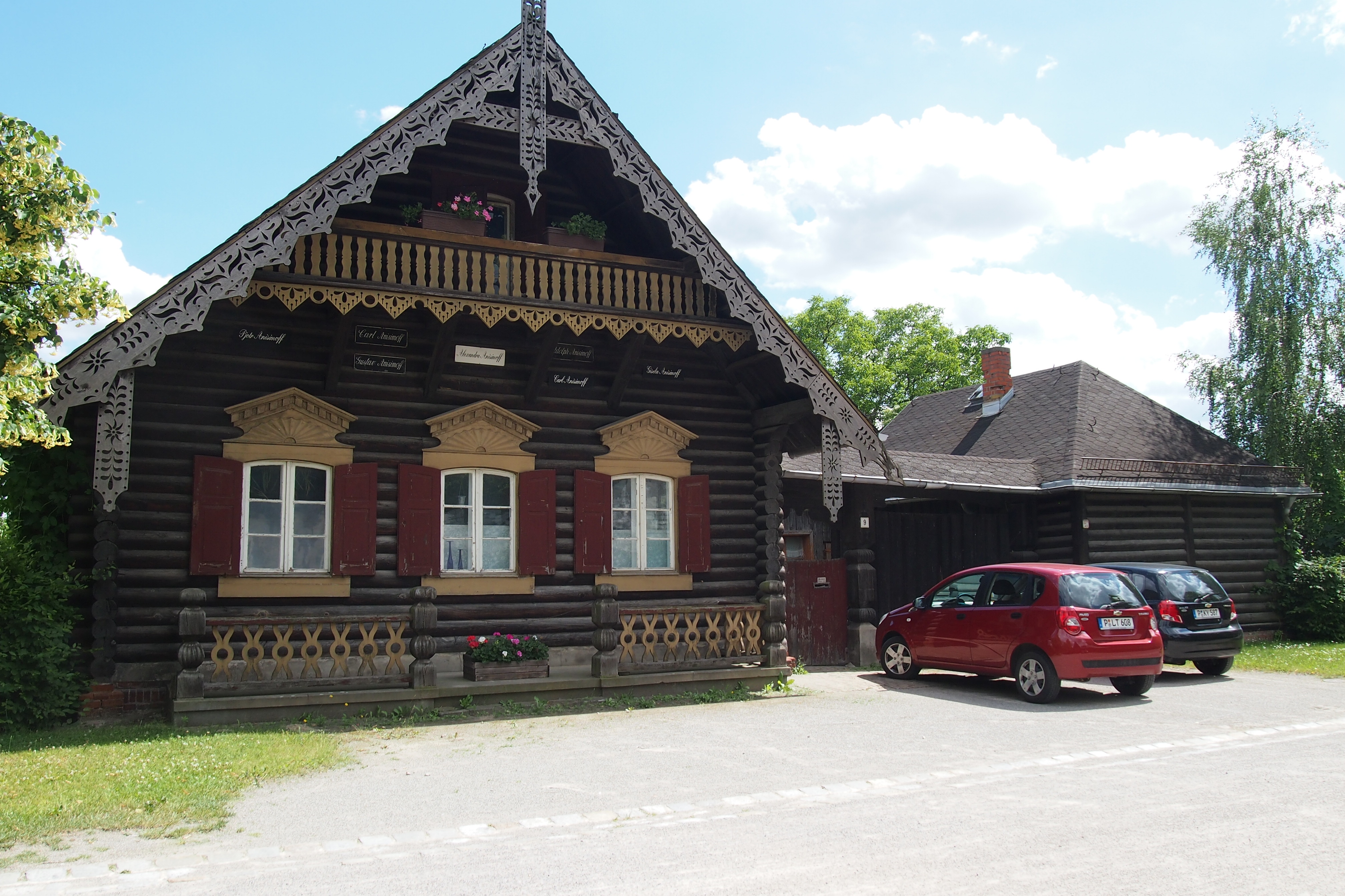My next major stop was the cute village of Alexandrowka, I was interested in the houses and the whole concept of a reproduced Russian village in the middle of Potsdam. I’ve mentioned the alternative histories earlier so won’t repeat that. It was quite a walk from the bus stop but well worth it, cute little houses, so well maintained with family names on each house, I haven’t been able to find out if those names are of the original inhabitants, perhaps someone can enlighten me on that. The village is built in the shape of St Andrews Cross (patron saint of Russia) and had massive orchards and gardens.